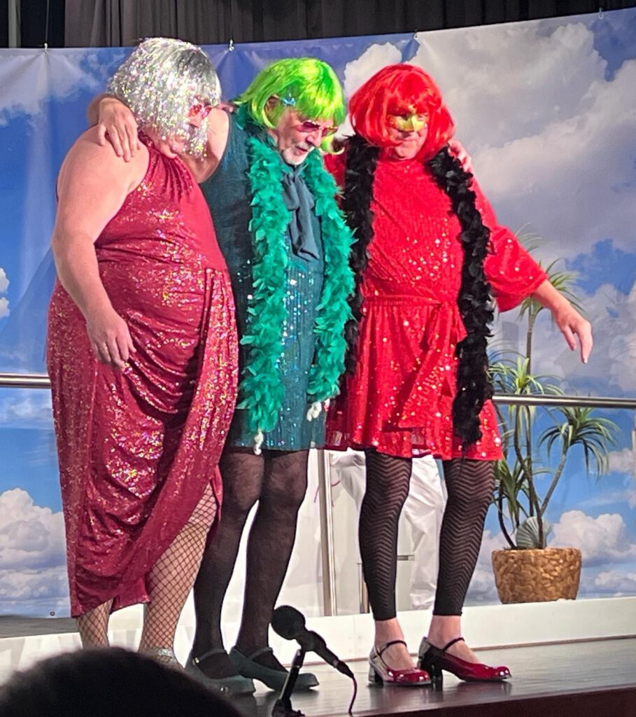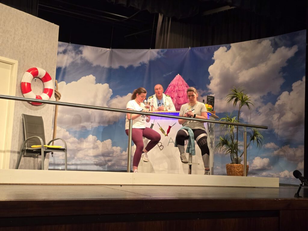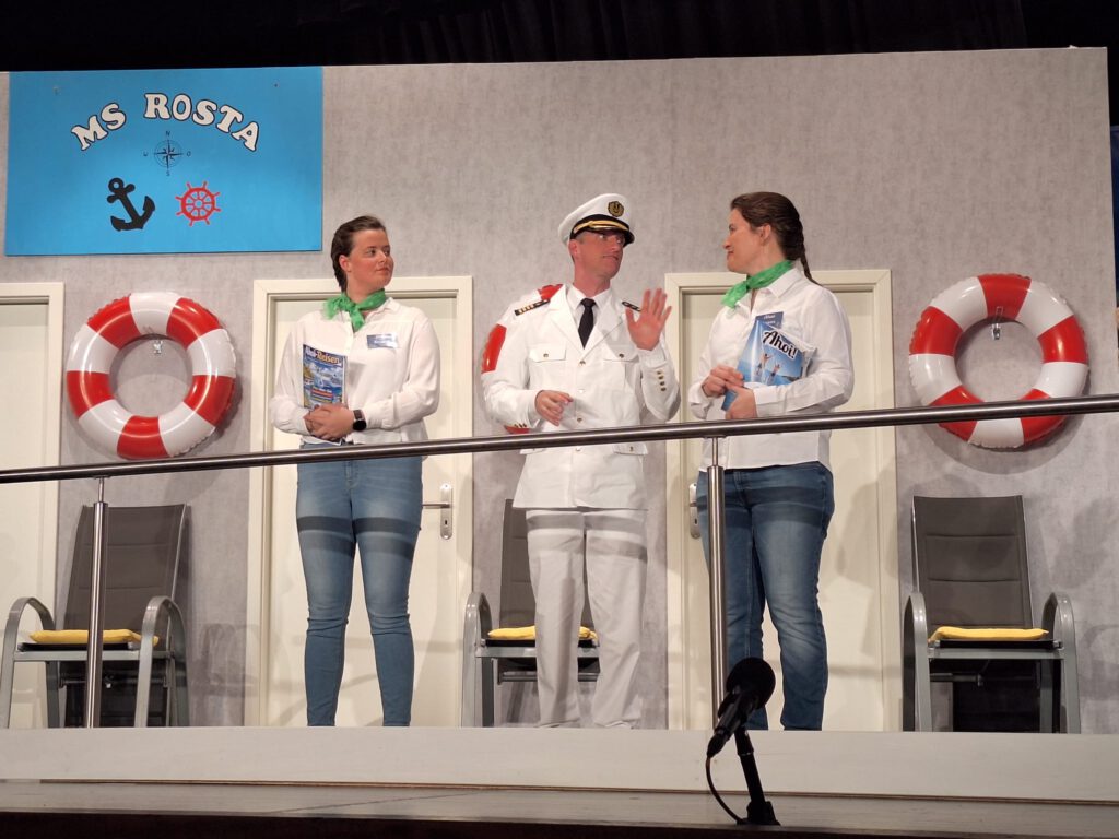 Nun gut, wir mögen ja Abwechslung und unser Publikum auch, also wurde weiter fleißig geprobt und dabei viel gelacht. Für unsere Kreativität sind wir ja bekannt und so wurde nach dem Öffnen des Vorgangs eine Szene vor dem eigentlichen Stück gezeigt, die dann in den Beginn des eigentlichen Stücks führte.