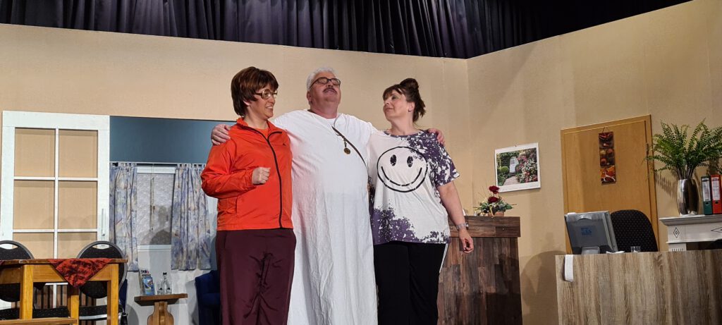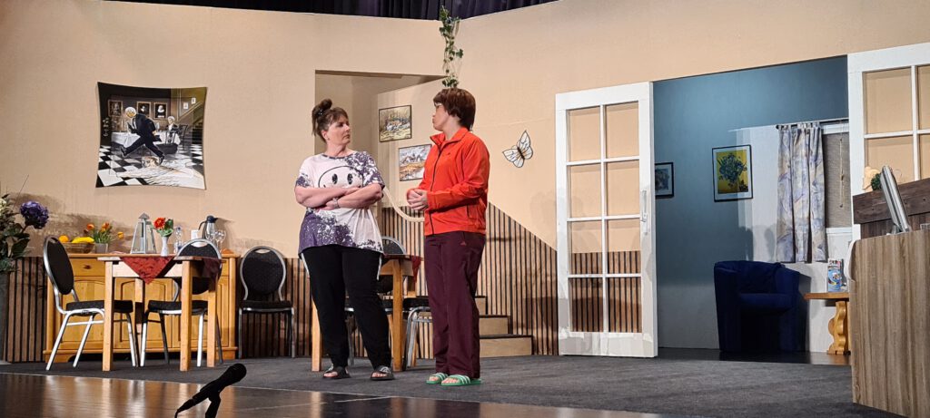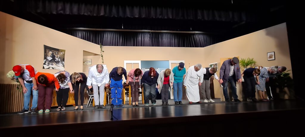 Nun gut, wir mögen ja Abwechslung und unser Publikum auch, also wurde weiter fleißig geprobt und dabei viel gelacht. Für unsere Kreativität sind wir ja bekannt und so wurde nach dem Öffnen des Vorgangs eine Szene vor dem eigentlichen Stück gezeigt, die dann in den Beginn des eigentlichen Stücks führte.